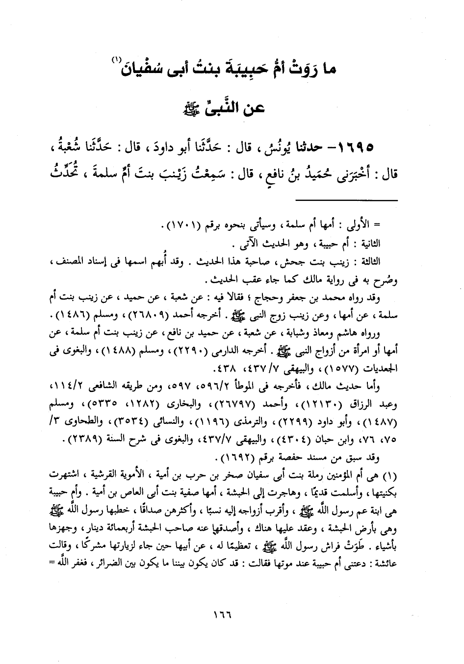 §مَا رَوَتْ أُمُّ حَبِيبَةَ بِنْتُ أَبِي سُفْيَانَ عَنِ النَّبِيِّ صَلَّى اللهُ عَلَيْهِ وَسَلَّمَ