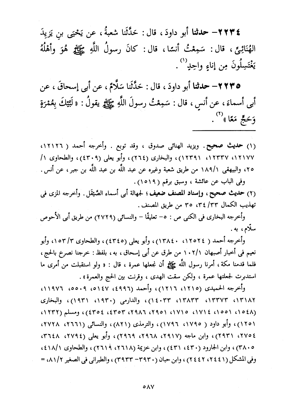 2235 - حَدَّثَنَا أَبُو دَاوُدَ قَالَ: حَدَّثَنَا سَلَّامٌ، عَنْ أَبِي إِسْحَاقَ، عَنْ أَبِي أَسْمَاءَ، عَنْ أَنَسٍ، قَالَ: سَمِعْتُ رَسُولَ اللَّهِ صَلَّى اللهُ عَلَيْهِ وَسَلَّمَ يَقُولُ: «§لَبَّيْكَ بِعُمْرَةٍ وَحَجٍّ مَعًا»