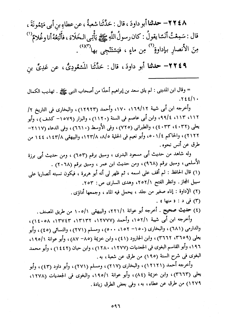 2248 - حَدَّثَنَا أَبُو دَاوُدَ قَالَ: حَدَّثَنَا شُعْبَةُ، عَنْ عَطَاءِ بْنِ أَبِي مَيْمُونَةَ، قَالَ: سَمِعْتُ أَنَسًا، يَقُولُ: «كَانَ رَسُولُ اللَّهِ صَلَّى اللهُ عَلَيْهِ وَسَلَّمَ §يَأْتِي الْخَلَاءَ، فَأَتْبَعَهُ أَنَا وَغُلَامٌ مِنَ الْأَنْصَارِ بِإِدَاوَةٍ مِنْ مَاءٍ، فَيَسْتَنْجِي بِهَا»