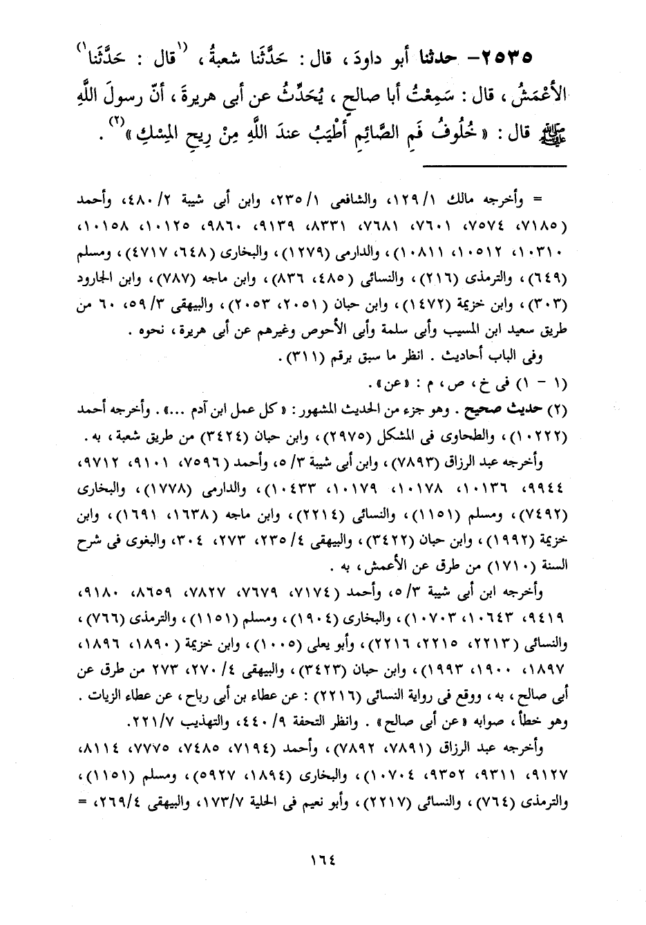 2535 - حَدَّثَنَا أَبُو دَاوُدَ قَالَ: حَدَّثَنَا شُعْبَةُ قَالَ: حَدَّثَنَا الْأَعْمَشِ، قَالَ: سَمِعْتُ أَبَا صَالِحٍ، يُحَدِّثُ عَنْ أَبِي هُرَيْرَةَ، أَنَّ رَسُولَ اللَّهِ صَلَّى اللهُ عَلَيْهِ وَسَلَّمَ قَالَ: «§خُلُوفُ فَمِ الصَّائِمِ أَطْيَبُ عِنْدَ اللَّهِ مِنْ رِيحِ الْمِسْكِ»