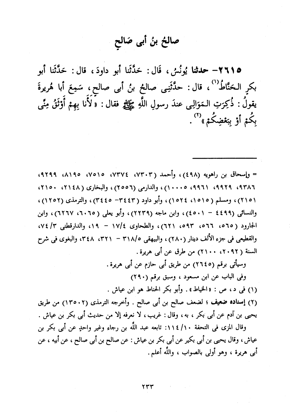 2615 - حَدَّثَنَا يُونُسُ قَالَ: حَدَّثَنَا أَبُو دَاوُدَ قَالَ: حَدَّثَنَا أَبُو بَكْرٍ الْحَنَّاطُ، قَالَ: حَدَّثَنِي صَالِحُ بْنُ أَبِي صَالِحٍ، سَمِعَ أَبَا هُرَيْرَةَ، يَقُولُ: ذُكِرَتِ الْمَوَالِي عِنْدَ رَسُولِ اللَّهِ صَلَّى اللهُ عَلَيْهِ وَسَلَّمَ فَقَالَ: «§لَأَنَا بِهِمْ أَوْثَقُ مِنِّي بِكُمْ، أَوْ بِبَعْضِكُمْ»