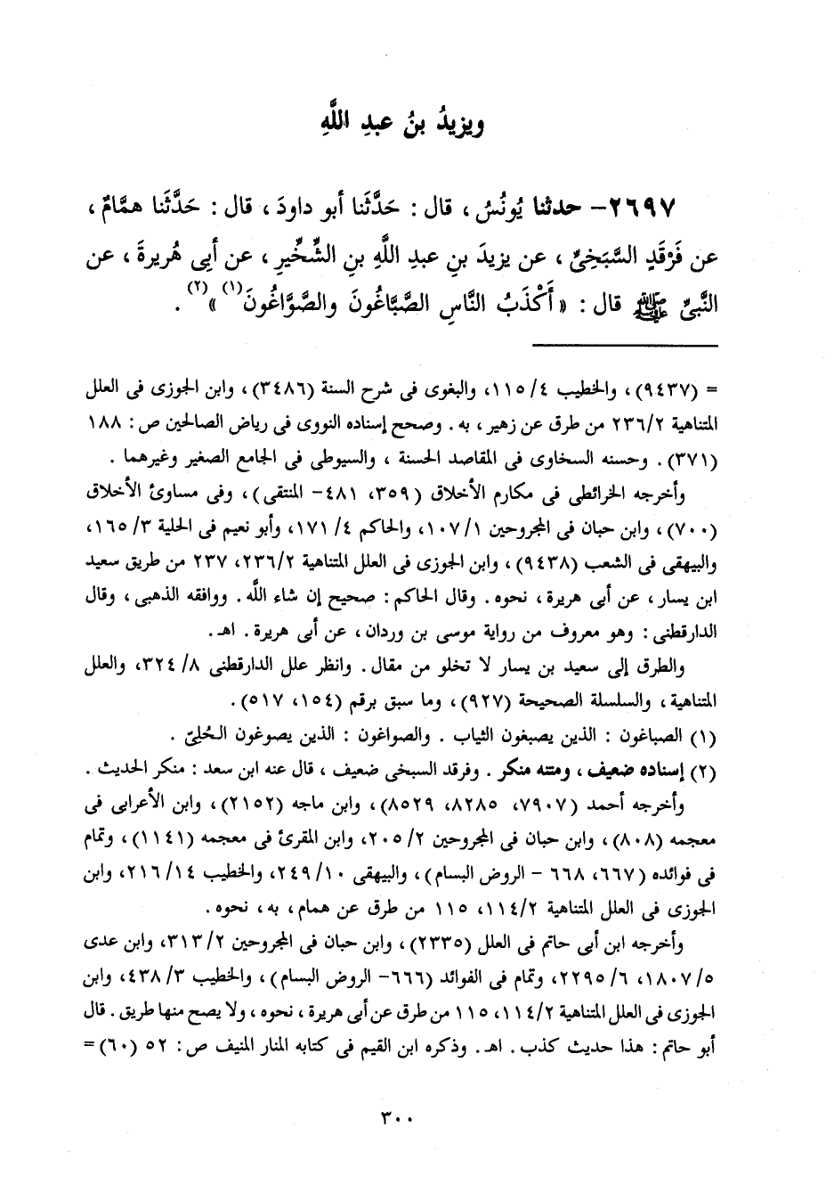 2697 - حَدَّثَنَا يُونُسُ قَالَ: حَدَّثَنَا أَبُو دَاوُدَ قَالَ: حَدَّثَنَا هَمَّامٌ، عَنْ فَرْقَدٍ السَّبَخِيِّ، عَنْ يَزِيدَ بْنِ عَبْدِ اللَّهِ بْنِ الشِّخِّيرِ، عَنْ أَبِي هُرَيْرَةَ، عَنِ النَّبِيِّ صَلَّى اللهُ عَلَيْهِ وَسَلَّمَ قَالَ: «§أَكْذَبُ النَّاسِ الصَّبَّاغُونَ وَالصَّوَّاغُونَ»