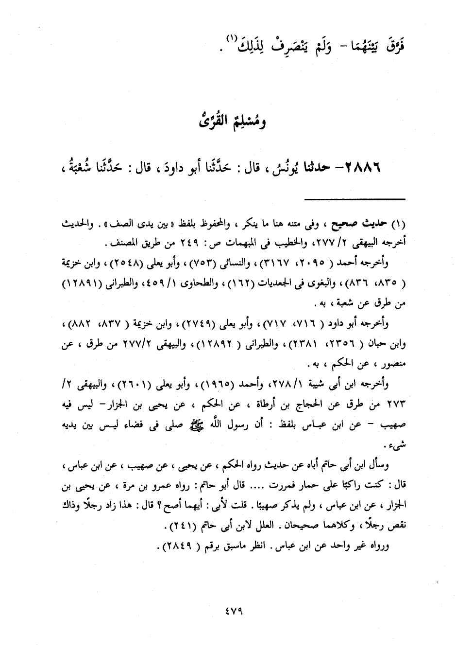 2886 - حَدَّثَنَا يُونُسُ قَالَ: حَدَّثَنَا أَبُو دَاوُدَ قَالَ: حَدَّثَنَا شُعْبَةُ -[480]-، عَنْ مُسْلِمٍ الْقُرِّيِّ، قَالَ: سَمِعْتُ ابْنَ عَبَّاسٍ، يَقُولُ: «§أَهَلَّ رَسُولُ اللَّهِ صَلَّى اللهُ عَلَيْهِ وَسَلَّمَ بِالْحَجِّ، فَمَنْ كَانَ مِنْ أَصْحَابِهِ لَمْ يَكُنْ مَعَهُ هَدْيٌ أَحَلَّ، وَمَنْ كَانَ مَعَهُ هَدْيٌ لَمْ يُحِلَّ، وَكَانَ النَّبِيُّ صَلَّى اللهُ عَلَيْهِ وَسَلَّمَ وَطَلْحَةُ مِمَّنْ كَانَ مَعَهُمَا الْهَدْيُ»