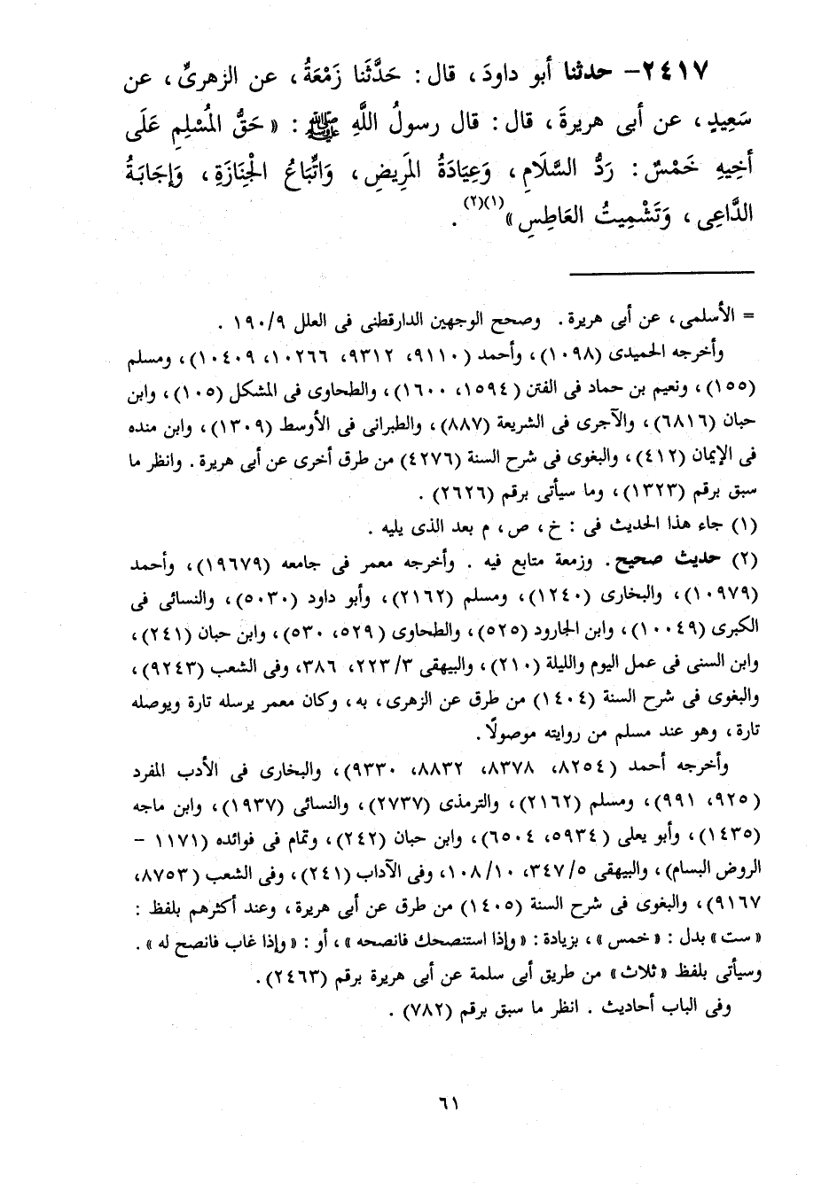 2416 - حَدَّثَنَا أَبُو دَاوُدَ قَالَ: حَدَّثَنَا ابْنُ أَبِي ذِئْبٍ، عَنِ الزُّهْرِيِّ، عَنْ سَعِيدٍ، عَنْ أَبِي هُرَيْرَةَ، قَالَ: قَالَ رَسُولُ اللَّهِ صَلَّى اللهُ عَلَيْهِ وَسَلَّمَ: «§لَيُوشِكَنَّ أَنْ يَنْزِلَ فِيكُمْ عِيسَى ابْنُ مَرْيَمَ عَلَيْهِ السَّلَامُ حَكَمًا مُقْسِطًا، يَقْتُلُ الْخِنْزِيرَ وَيَكْسِرُ الصَّلِيبَ وَيَضَعُ الْجِزْيَةَ وَيَفِيضُ الْمَالُ حَتَّى لَا يَقْبَلَهُ أَحَدٌ»