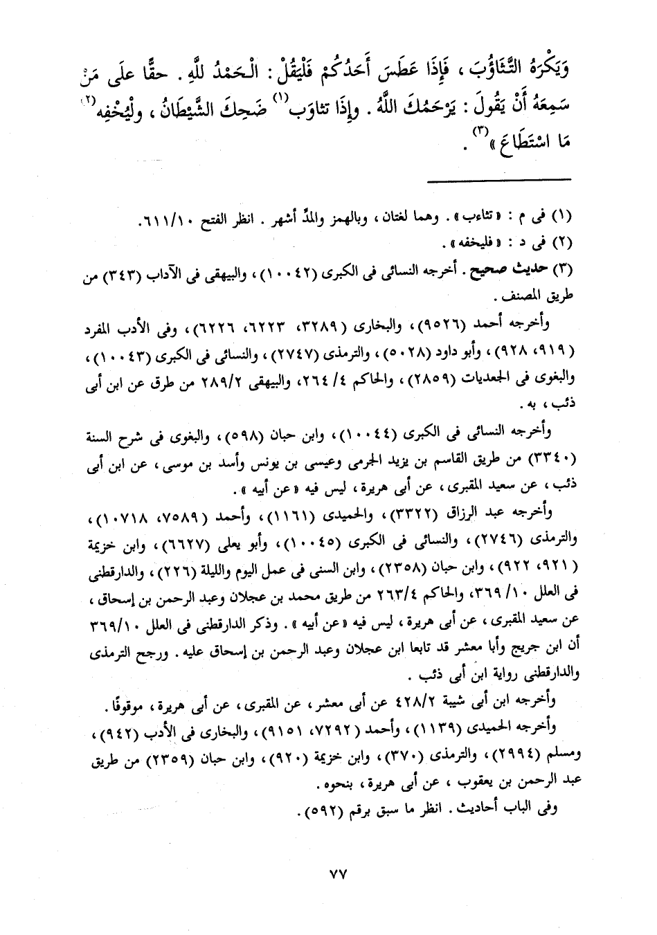 2434 - حَدَّثَنَا يُونُسُ قَالَ: حَدَّثَنَا أَبُو دَاوُدَ قَالَ: حَدَّثَنَا ابْنُ أَبِي ذِئْبٍ، قَالَ: حَدَّثَنَا سَعِيدُ بْنُ أَبِي سَعِيدٍ الْمَقْبُرِيُّ، عَنْ أَبِيهِ، عَنْ أَبِي هُرَيْرَةَ، قَالَ: قَالَ رَسُولُ اللَّهِ صَلَّى اللهُ عَلَيْهِ وَسَلَّمَ: " إِنَّ §اللَّهَ عَزَّ وَجَلَّ يُحِبُّ الْعُطَاسَ -[78]- وَيَكْرَهُ التَّثَاؤُبَ، فَإِذَا عَطَسَ أَحَدُكُمْ فَلْيَقُلْ: الْحَمْدُ لِلَّهِ حَقًّا عَلَى مَنْ سَمِعَهُ أَنْ يَقُولَ: يَرْحَمُكَ اللَّهُ، وَإِذَا تَثَاءَبَ ضَحِكَ الشَّيْطَانُ، وَلْيُخْفِهِ مَا اسْتَطَاعَ "