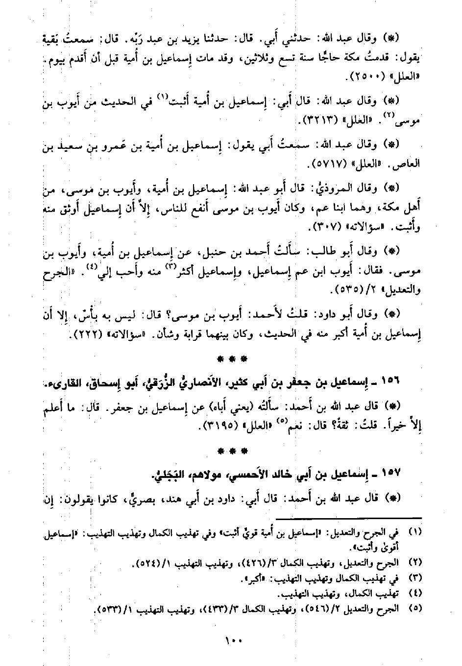 • وقال عبد الله: سمعتُ أَبي يقول: إسماعيل بن أمية بن عمرو بن سعيد بن العاص. «العلل» (5717) .