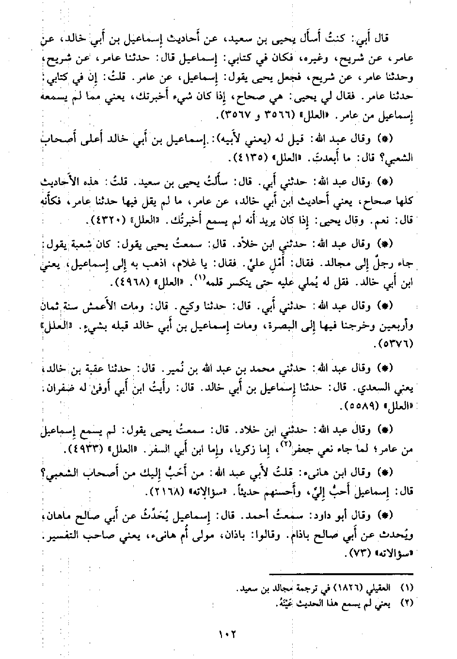 • وقال عبد الله: قيل له (يعني لأبيه) : إسماعيل بن أبي خالد أعلى أصحاب الشعبي؟ قال: ما أبعدت. «العلل» (4175) .