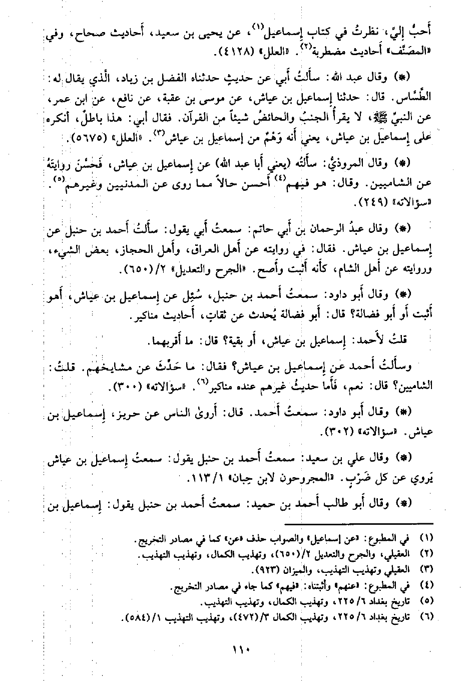 • وقال علي بن سعيد: سمعت أحمد بن حنبل يقول: سمعت إسماعيل بن عياش يروي عن كل ضرب. «المجروحون لابن حبان» 1/113.