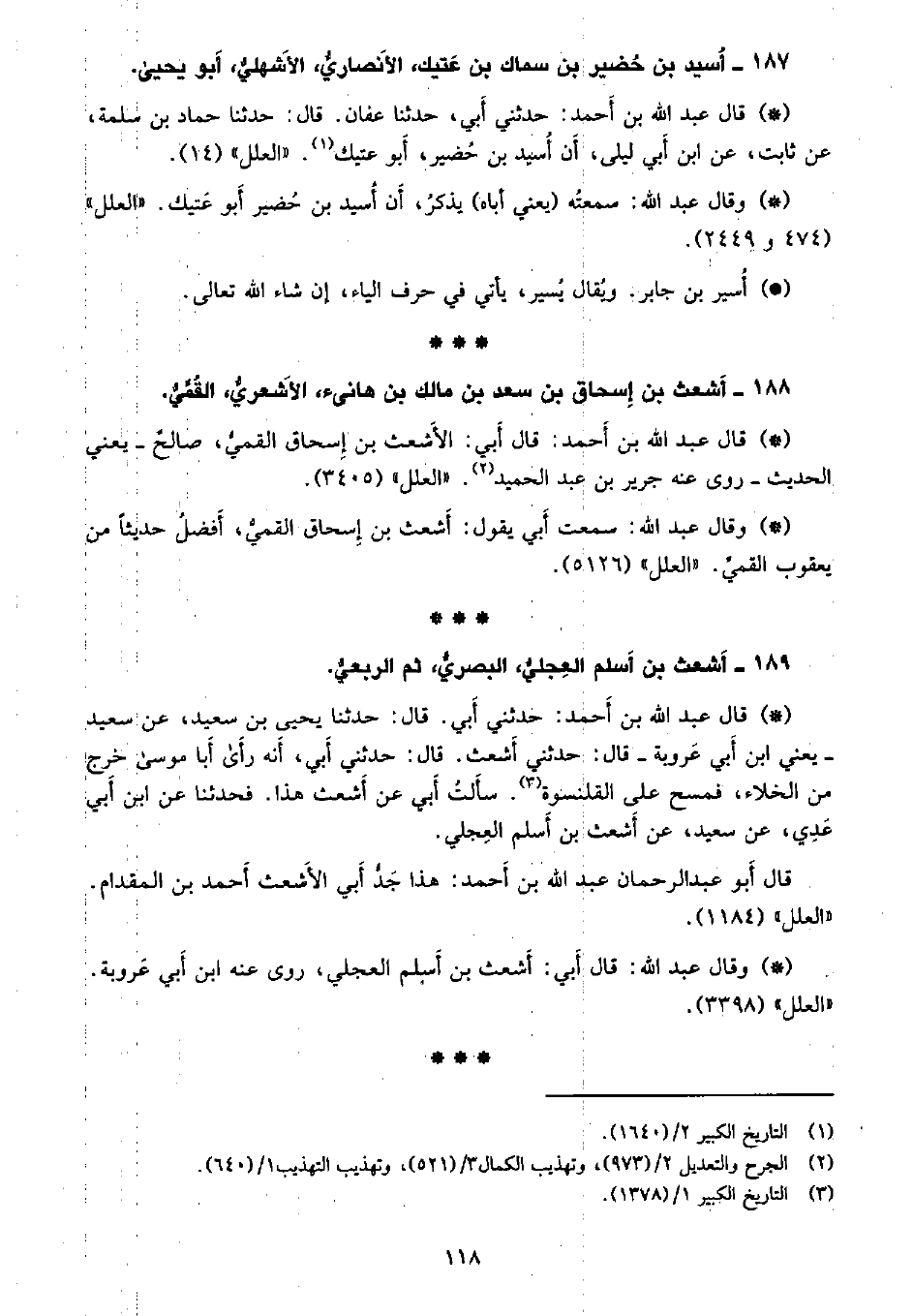 • قال عبد الله أحمد: حدثني أبي، حدثنا عفان. قال: حدثنا حماد بن سلمة، عن ثابت، عن ابن أبي ليلى أن أسيد بن حضير أبو عتيك. «العلل» (14) .