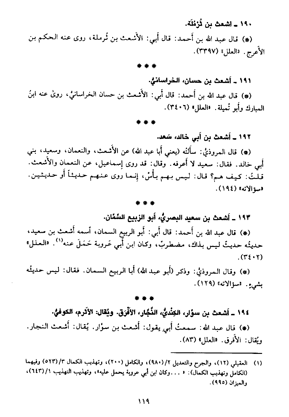 • قال عبد الله بن أحمد: قال أبي: الأشعث بن ثرملة، روى عنه الحكم بن الأعرج. «العلل» (3397) .
