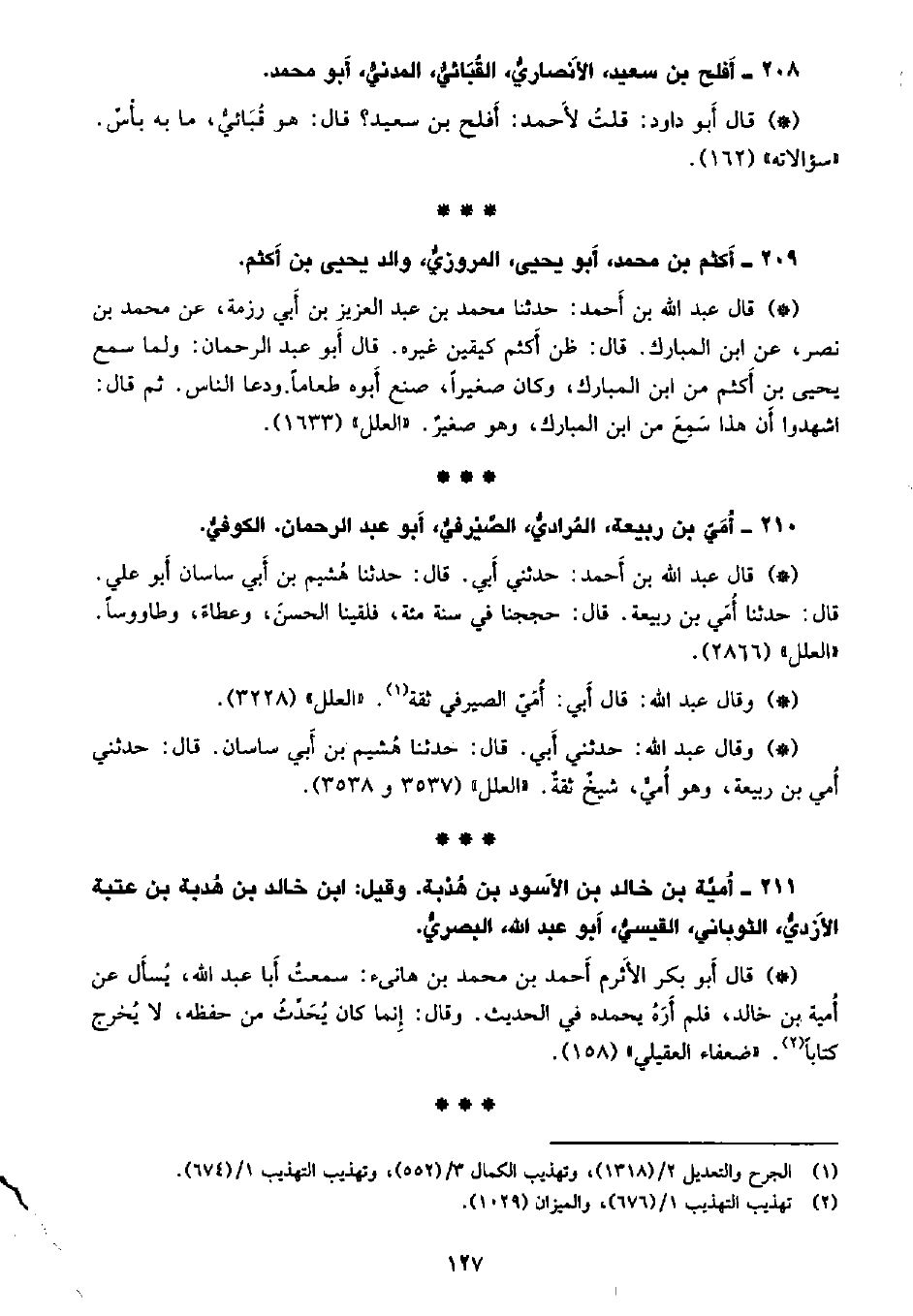 • وقال عبد الله: حدثني أبي. قال: حدثنا هشيم بن أبي ساسان. قال: حدثني أمي بن ربيعة، وهو أمي، شيخ ثقه. «العلل» (3537 و3538) .