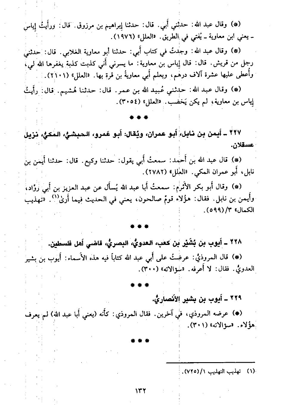 • عرضه المروذي، في آخرين. فقال المروذي: كأنه (يعني أبا عبد الله) لم يعرف هؤلاء. «سؤالاته» (301) .