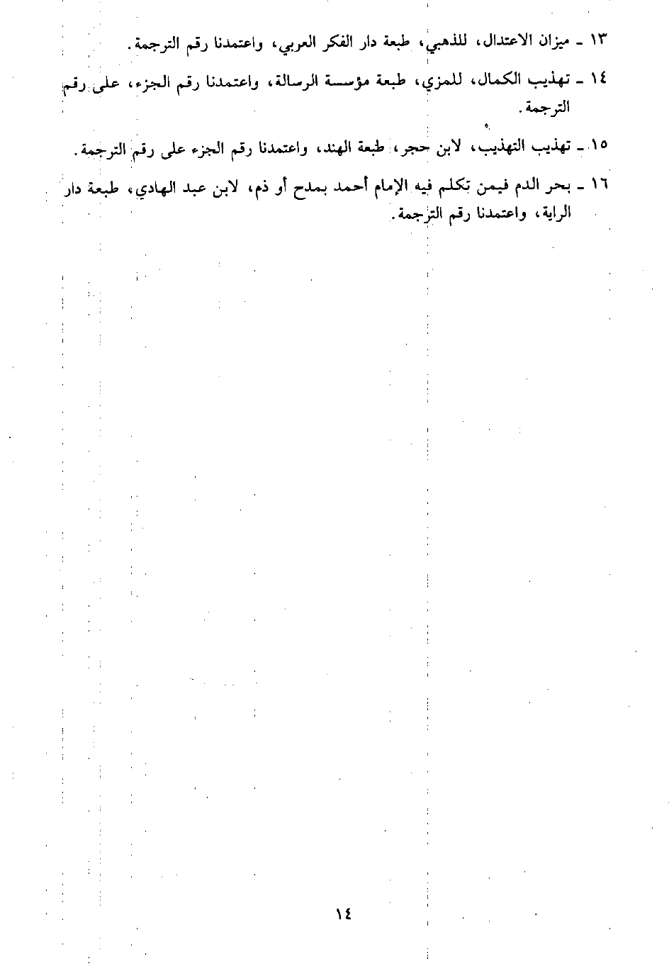 14 - تهذيب الكمال، للمزي، طبعة مؤسسة الرسالة، واعتمدنا رقم الجزء، على رقم الترجمة.