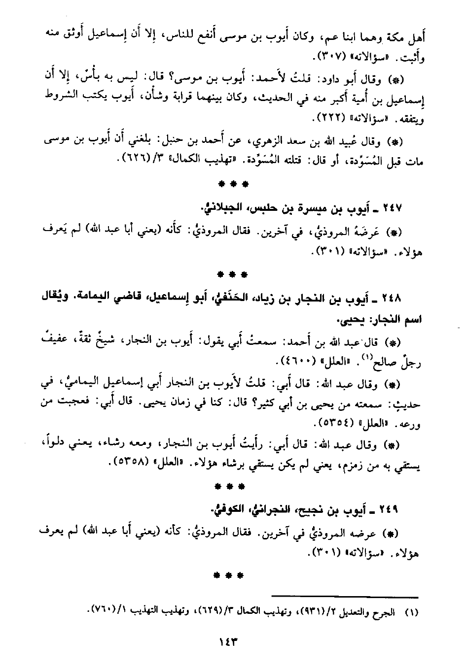• وقال عبيد الله بن سعد الزهري، عن أحمد بن حنبل: بلغني أن أيوب بن موسى مات قبل المسودة، أو قال: قتلته المسودة. «تهذمب الكمال» 3/ (626) .