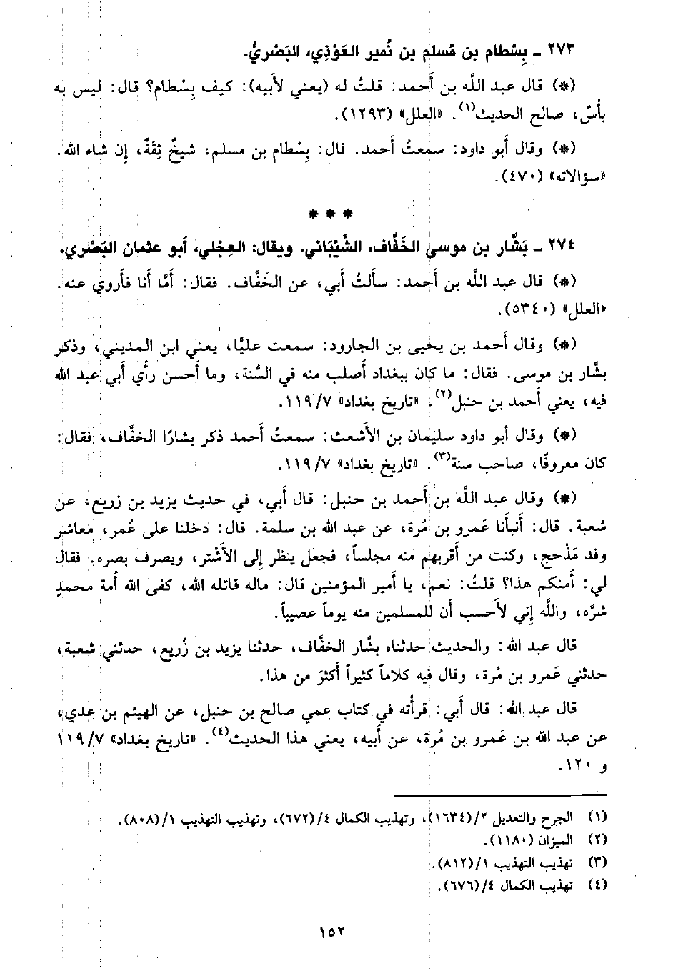 • وقال أبو داود سليمان بن الأشعث: سمعت أحمد ذكر بشارًا الخفاف. فقال: كان معروفًا صاحب سنة. «تاريخ بغداد» 7/119.