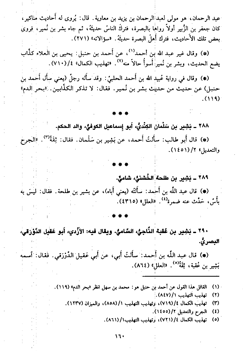 • قال أبو طالب: سألت أحمد، عن بشير بن سلمان. فقال: ثقة. «الجرح والتعديل» 2/ (1451) .