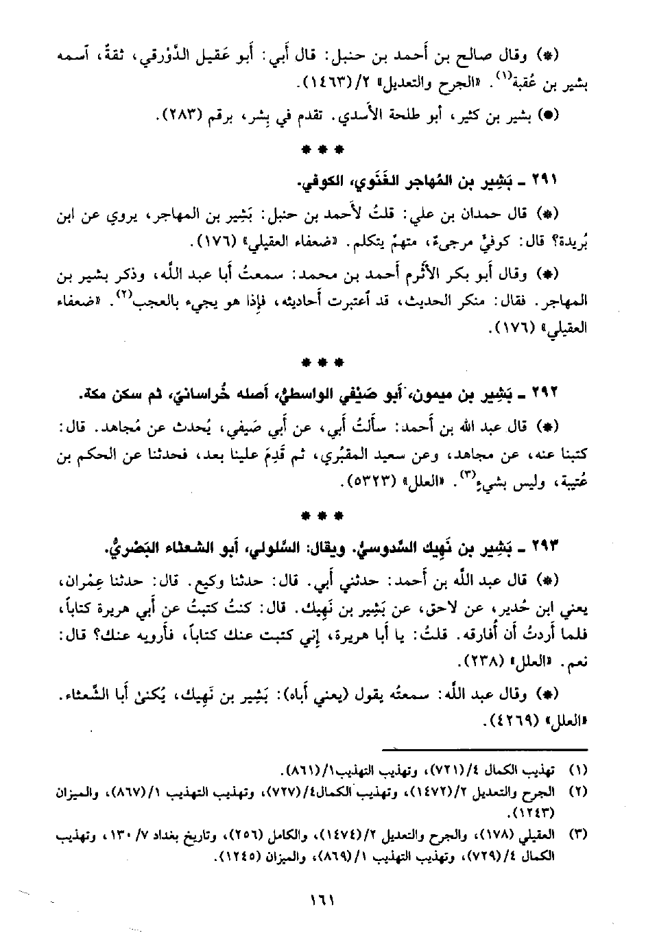 • وقال عبد الله: سَمِعتُهُ يقول (يعني أباه) : بشير بن نهيك، يكنى أبا الشعثاء. «العلل» (4269) .