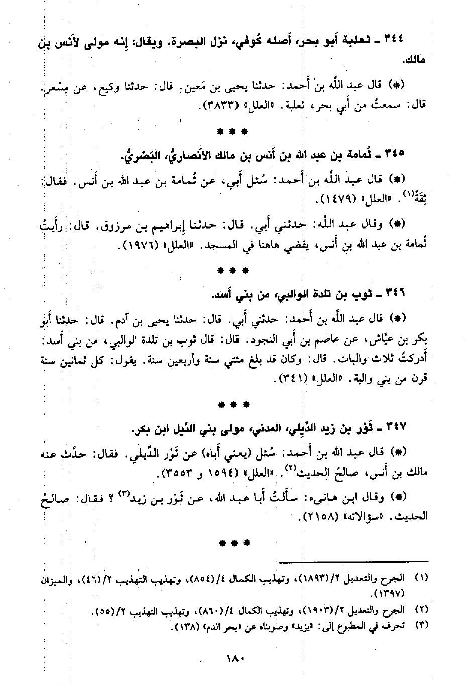 • قال عبد الله بن أحمد: حدثنا يحيى بن معين. قال: حدثنا وكيع، عن مسعر. قال: سمعت من أبي بحر ثعلبة. «العلل» (3833) .