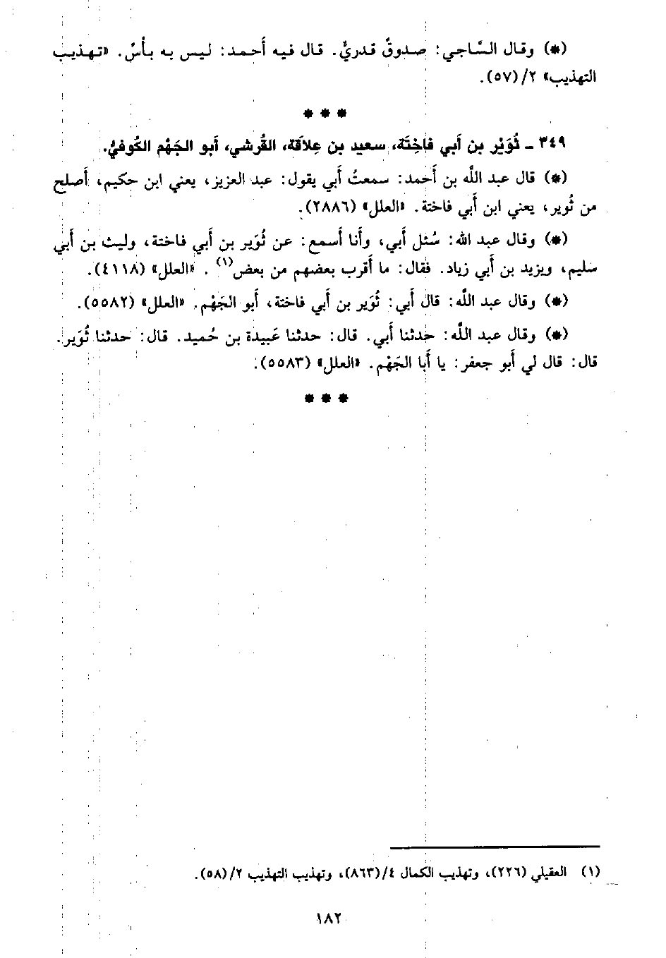 • وقال عبد الله: حدثنا أبي. قال: حدثنا عبيدة بن حميد. قال: حدثنا ثوير. قال: قال لي أبو جعفر: يا أبا الجهم. «العلل» (5583) .