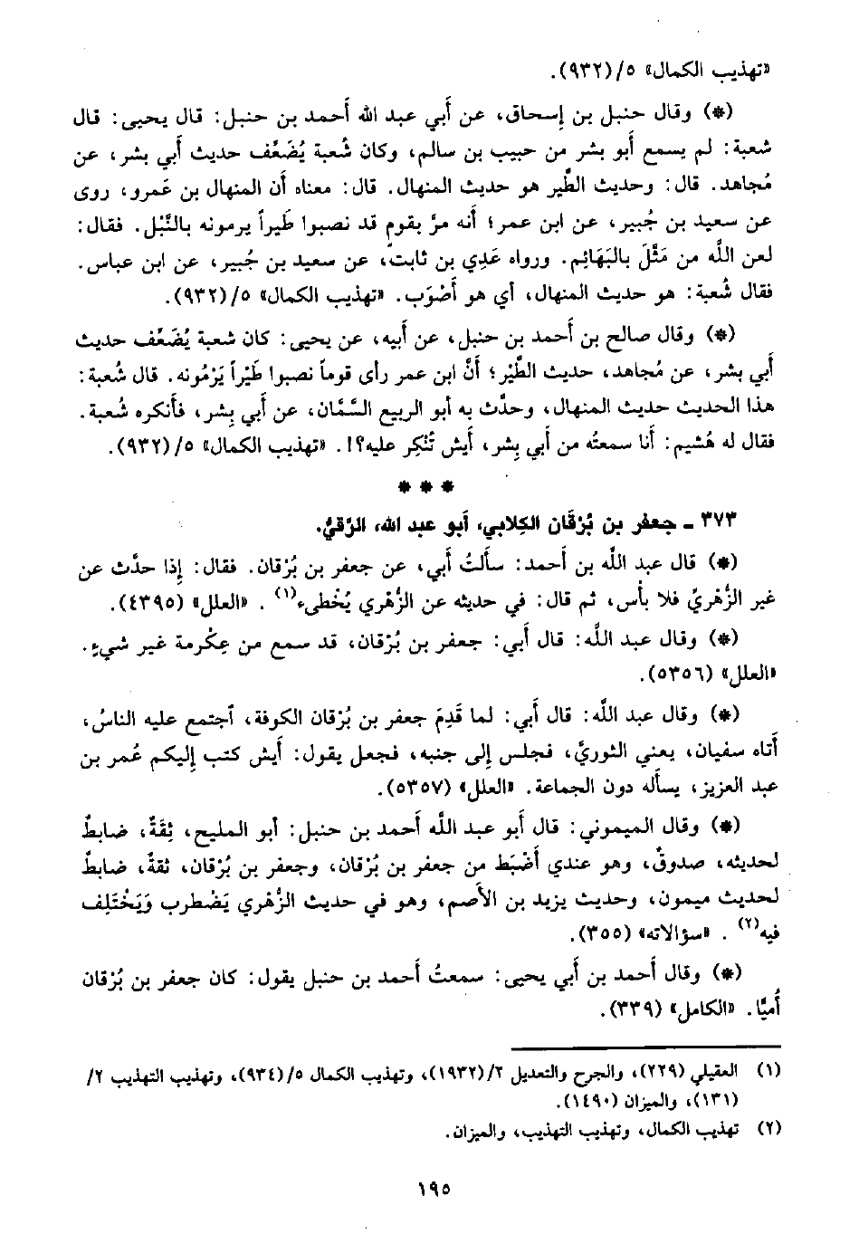 • وقال أحمد بن أبي يحيى: سمعت أحمد بن حنبل يقول: كان جعفر بن برقان أميًا. «الكامل» (339) .