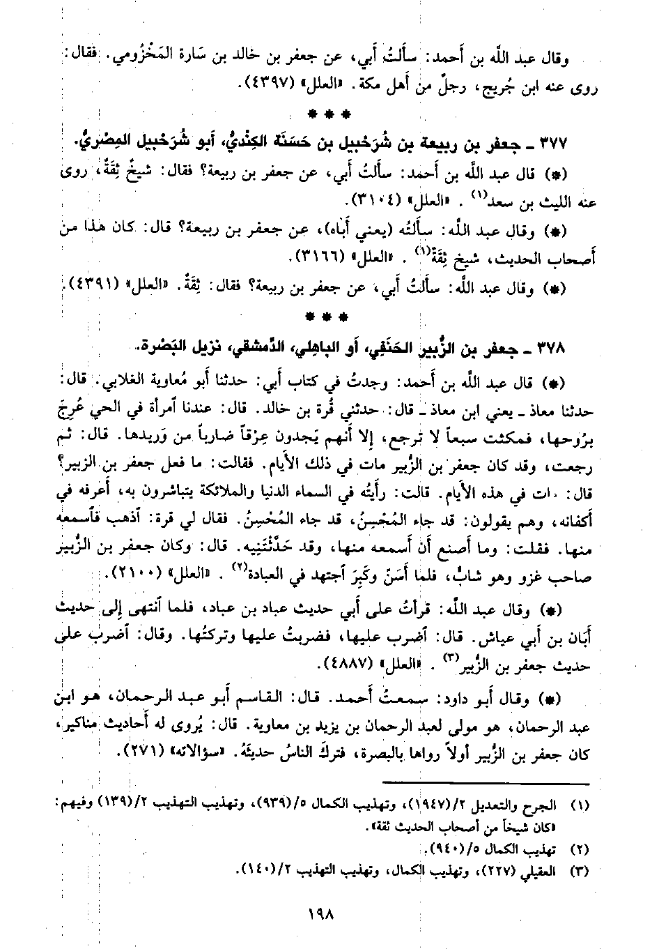 • وقال عبد الله: سألت أبي عن جعفر بن ربيعة؟ فقال: ثقة. «العلل» (4391) .
