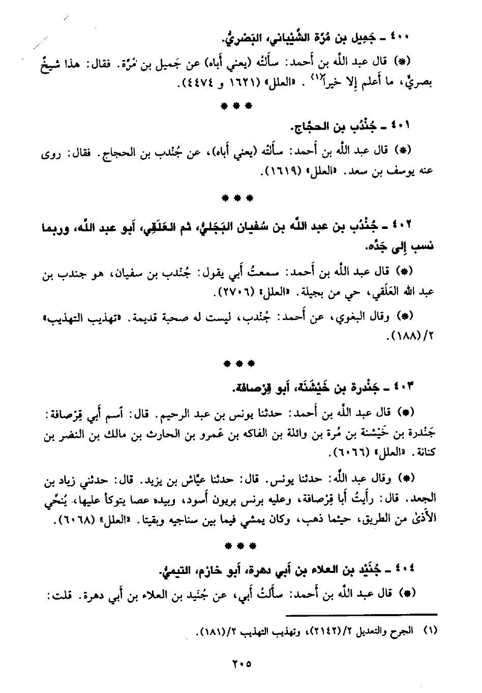 • وقال البغوي، عن أحمد: جندب، ليست له صحبة قديمة. «تهذيب التهذيب» 2/ (188) .