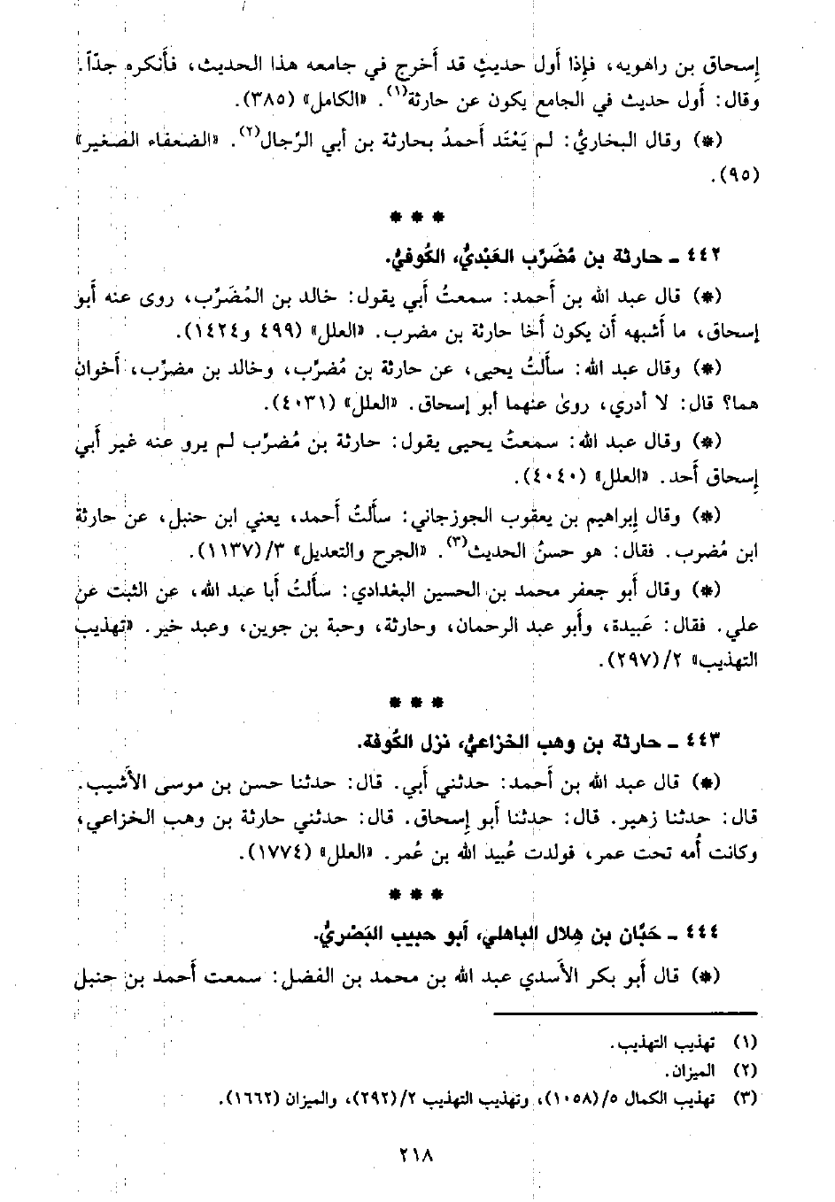 • وقال البخاري: لم يعتد أحمد بحارثة بن أبي الرجال. «االضعفاء الصغير» (95) .