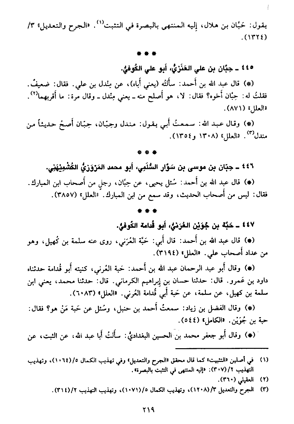 • وقال الفضل بن زياد: سمعت أحمد بن حنبل وسُئل عن حبة من هو؟ فقال: حبة بن جوين. «الكامل» (544) .