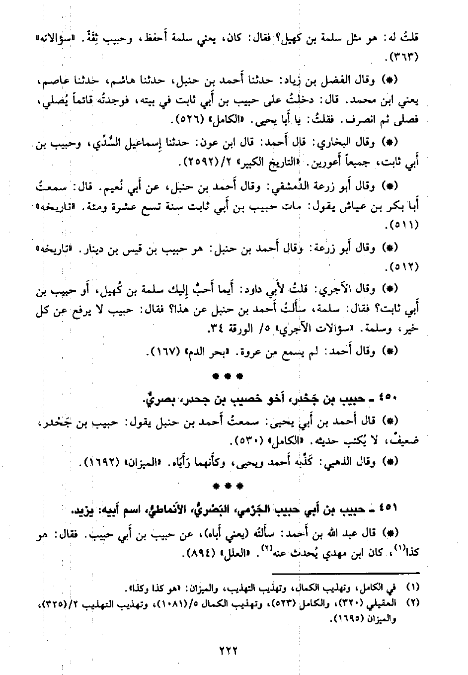• قال عبد الله بن أحمد: سألته (يعني أباه) ، عن حبيب بن أبي حبيب. فقال: هو كذا، كان ابن مهدي يحدث عنه. «العلل» (894) .
