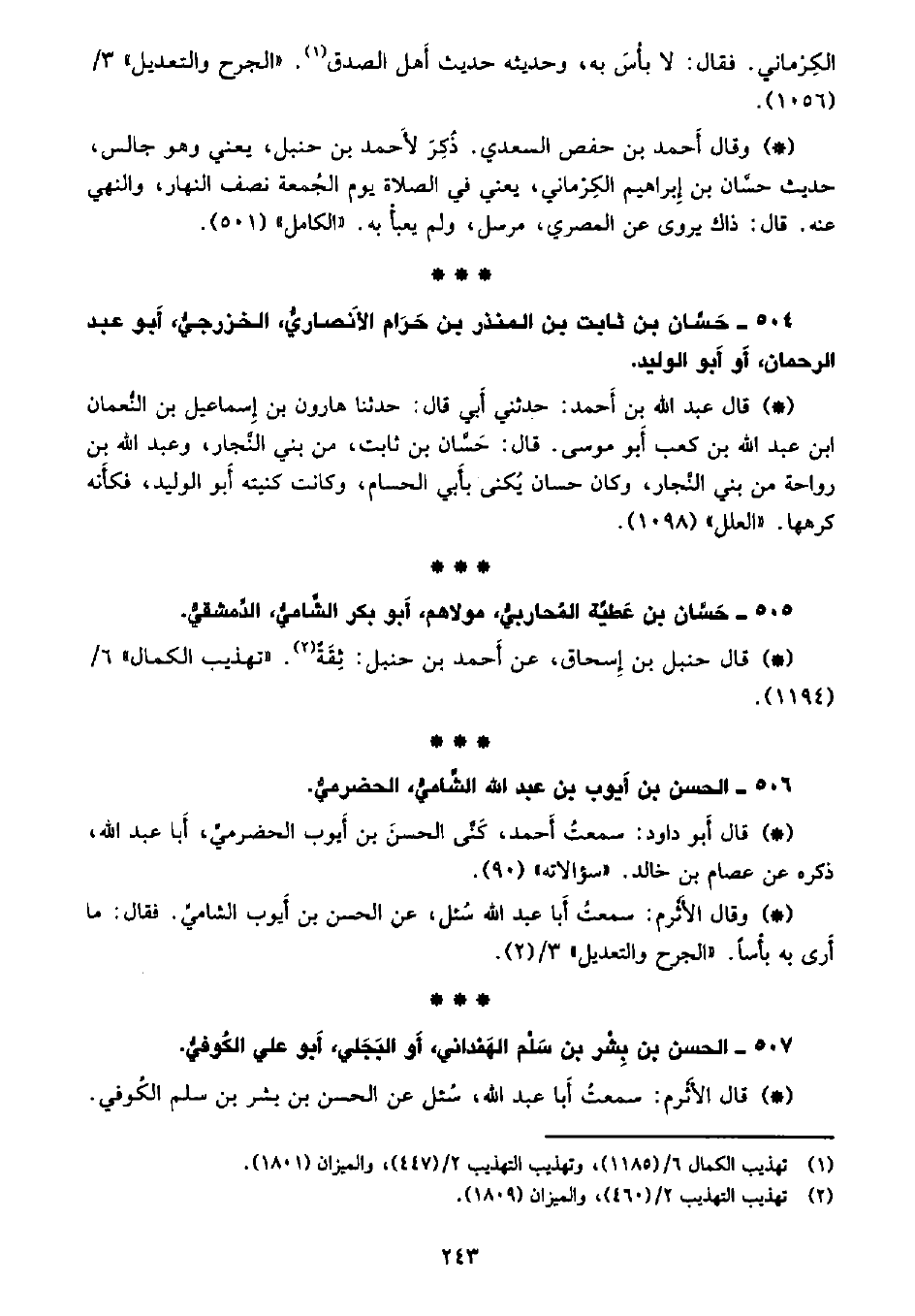 • قال حنبل بن إسحاق، عن أحمد بن حنبل: ثقة. «تهذيب الكمال» 6/ (1194) .