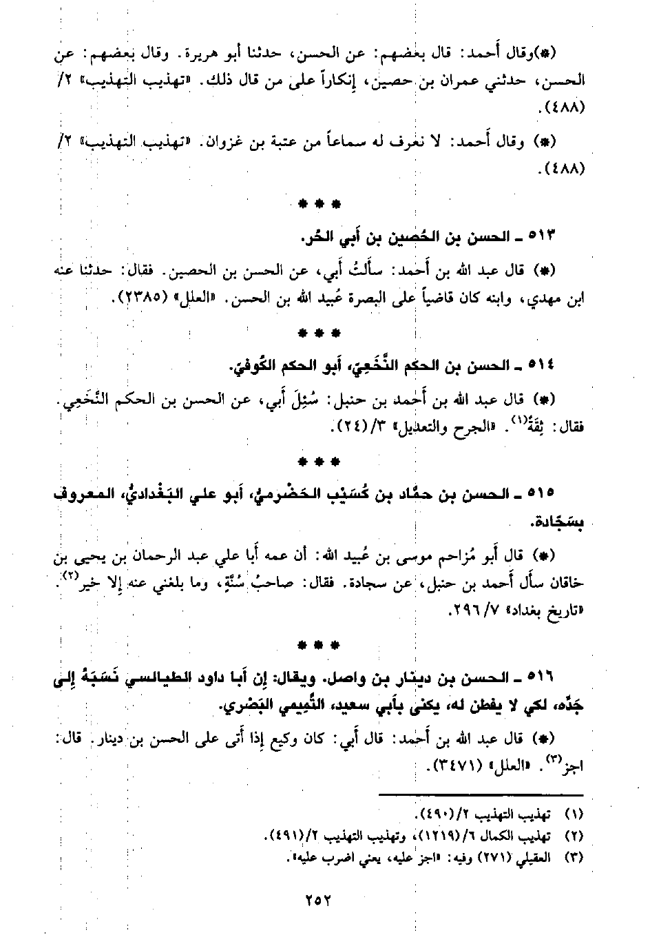 • وقال أحمد: قال بعضهم: عن الحسن، حدثنا أبو هريرة. وقال بعضهم: عن الحسن، حدثني عمران بن حصين، إنكارًا على من قال ذلك. «تهذيب التهذيب» 2/ (488) .