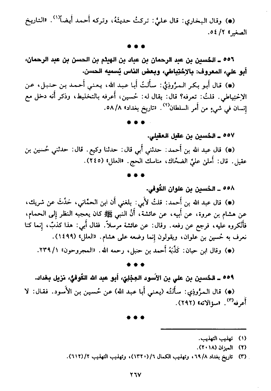 556 - الحسين بن عبد الرحمن بن عباد بن الهيثم بن الحسن بن عبد الرحمن، أبو علي المعروف: بالاحتياطي، وبعض الناس يُسميه الحسن.
