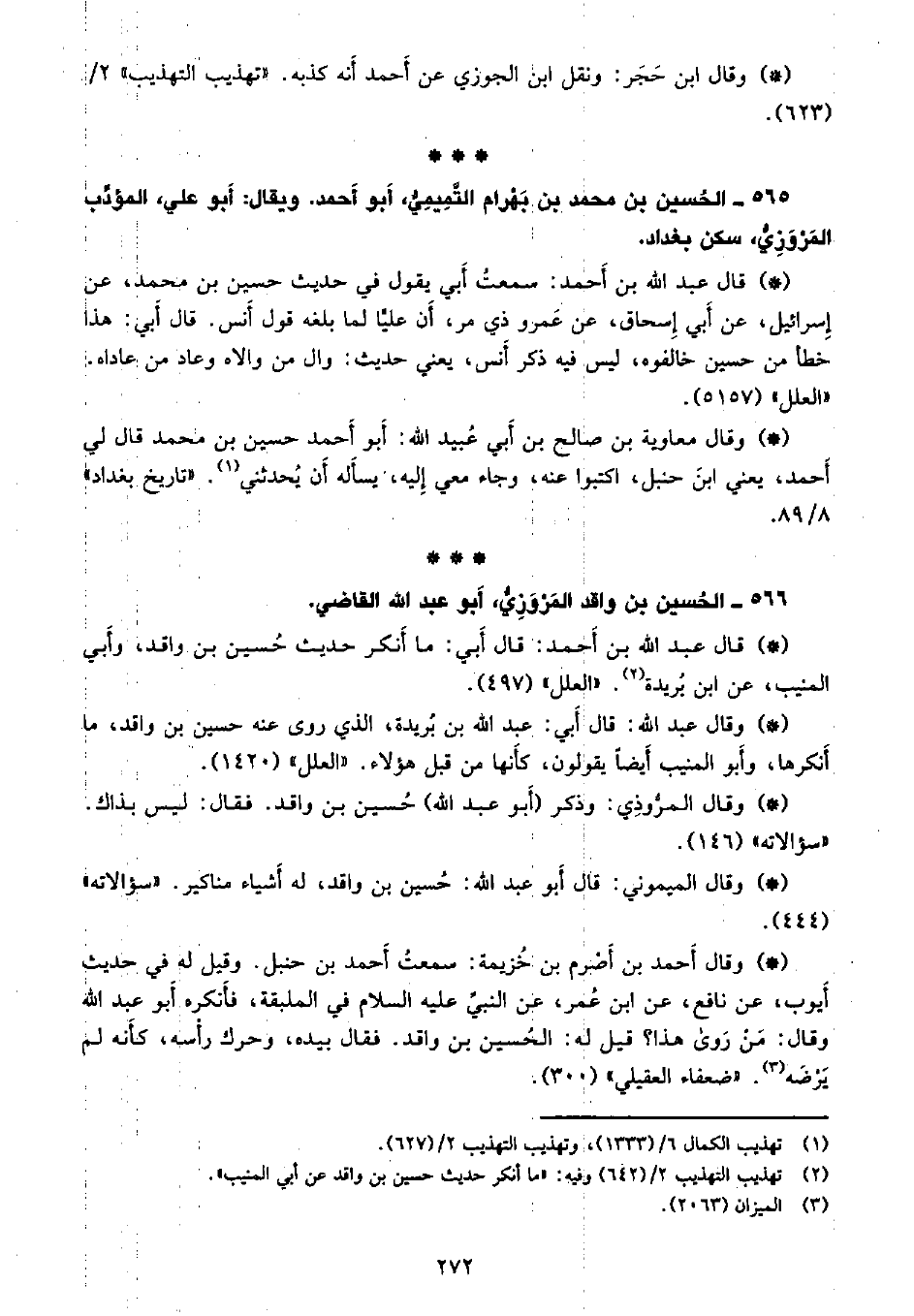 565 - الحسين بن محمد بن بهرام التميمي أبو أحمد، ويقال: أبو علي المؤدب، المروزي، سكن بغداد.