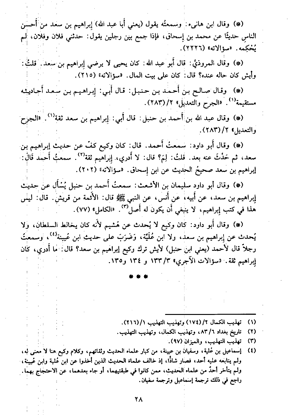 • وقال صالح بن أحمد بن حنبل: قال أبي: إبراهمم بن سعد أحاديثه مستقيمة. «الجرح والتعديل» 2/ (283) .