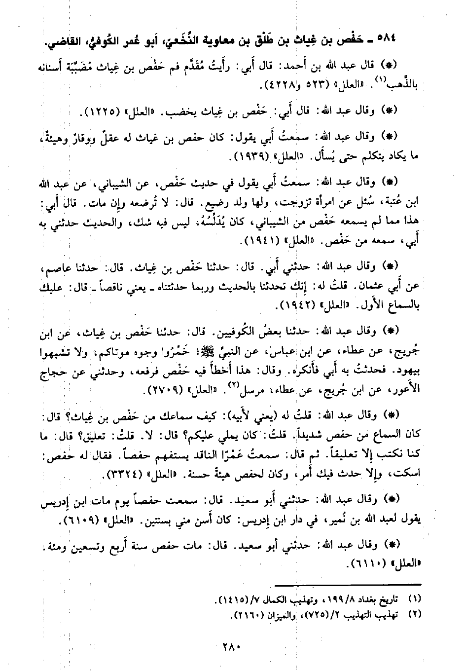 584 - حفص بن غياث بن طلق بن معاوية، النخعي، أبو عمر، الكوفي، القاضي.