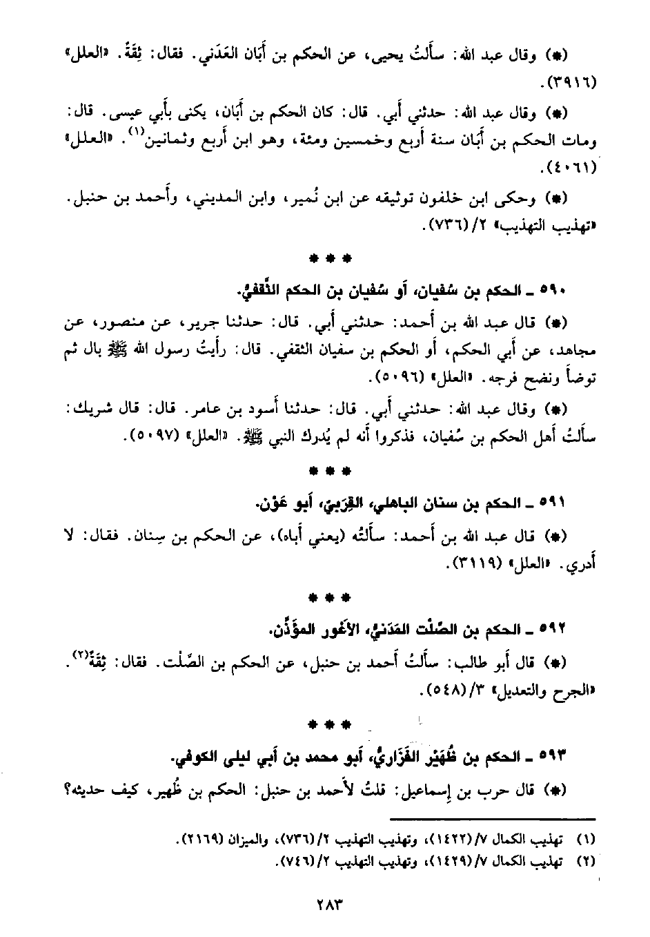 • وقال عبد الله: حدثني أبي. قال: حدثنا أسود بن عامر. قال: قال شريك: سألت أهل الحكم بن سفيان، فذكروا أنه لم يدرك النبي - صلى الله عليه وسلم -. «العلل» (5097) .