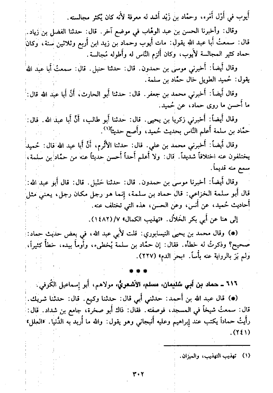وقال أيضًا: أخبرنى زكريا بن يحيى. قال: حدثنا أبو طالب، أن أبا عبد الله. قال: حماد بن سلمة أعلم الناس بحديث حميد وأصح حديثًا.