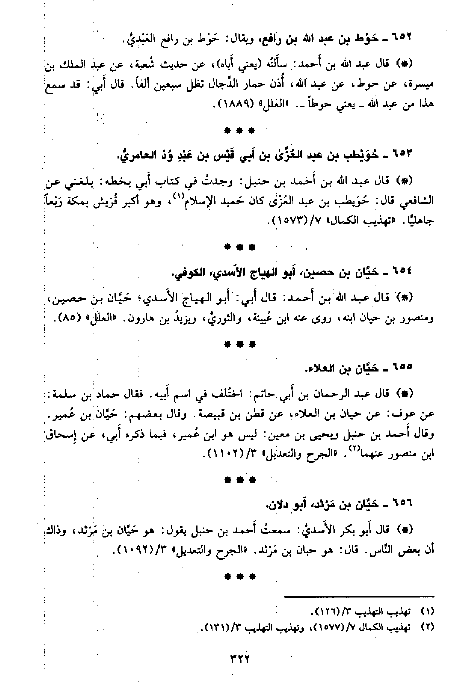• قال عبد الله بن أحمد: قال أبي: أبو الهياج الأسدي؛ حيان بن حصين، ومنصور بن حيان ابنه، روى عنه ابن عيينة، والثوري، ويزيد بن هارون. «العلل» (85) .