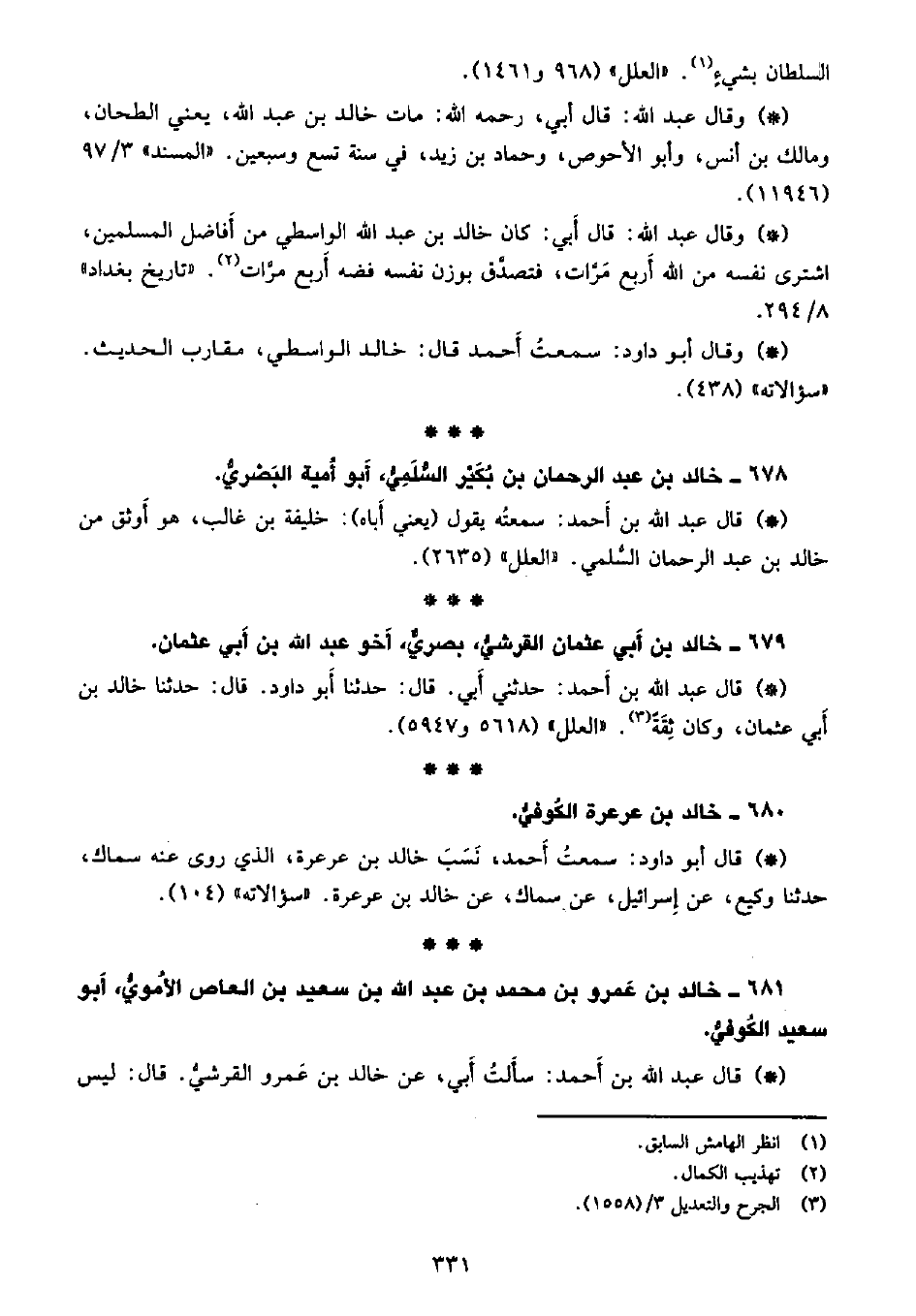 السلطان بشيء. «العلل» (968 و1461) .