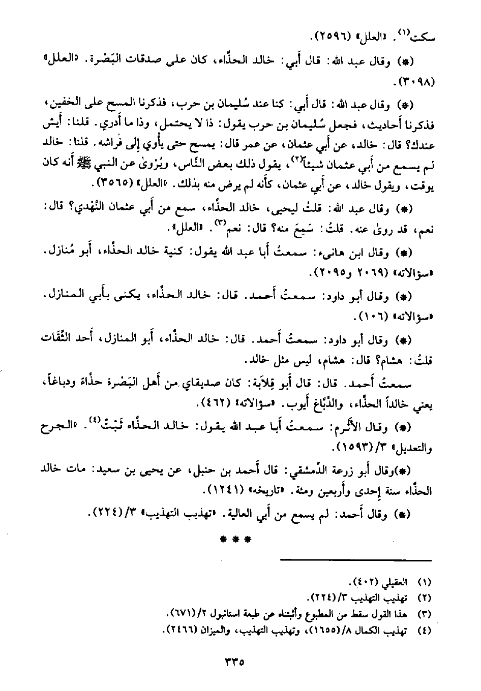 • وقال الأثرم: سمعت أبا عبد الله يقول: خالد الحذاء ثبت. «الجرح والتعديل» 3/ (1593) .