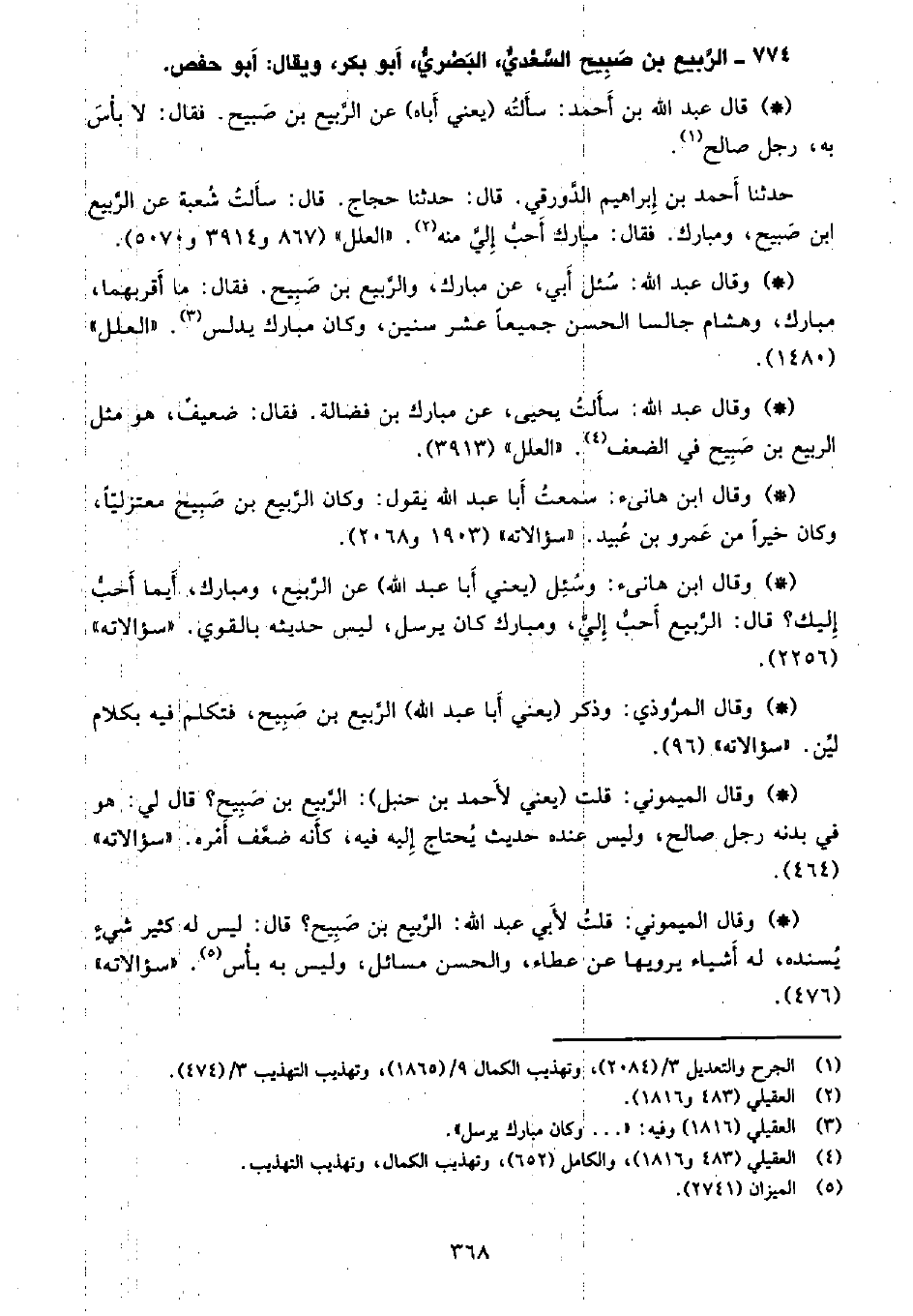 774 - الربيع بن صبيح السعدي، البصري، أبو بكر، ويقال: أبو حفص.