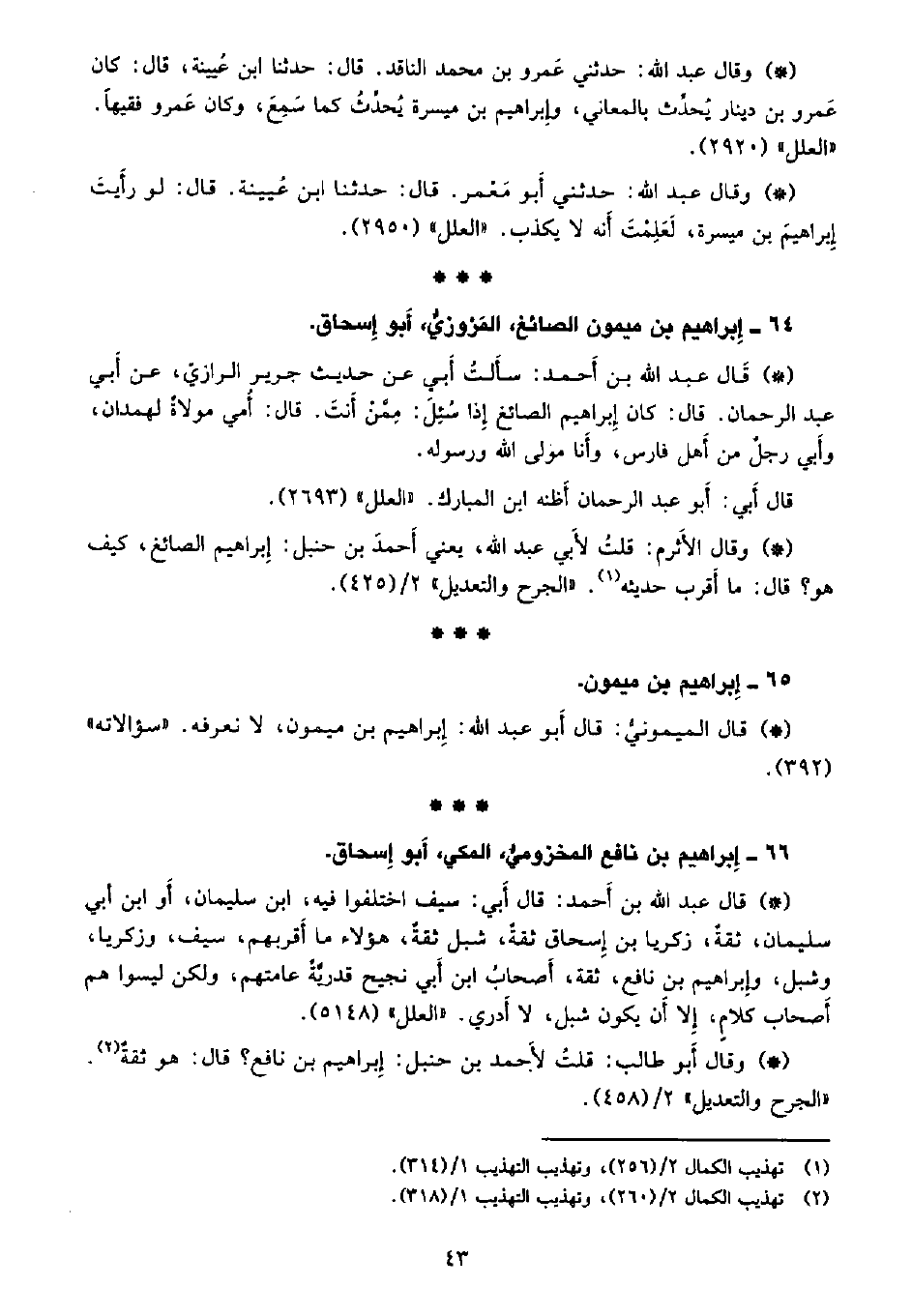 • وقال الأثرم: قلت لأبي عبد الله، يعني أحمد بن حنبل: إبراهيم الصائغ، كيف هو؟ قال: ما أقرب حديثه. «الجرح والتعديل» 2/ (425) .