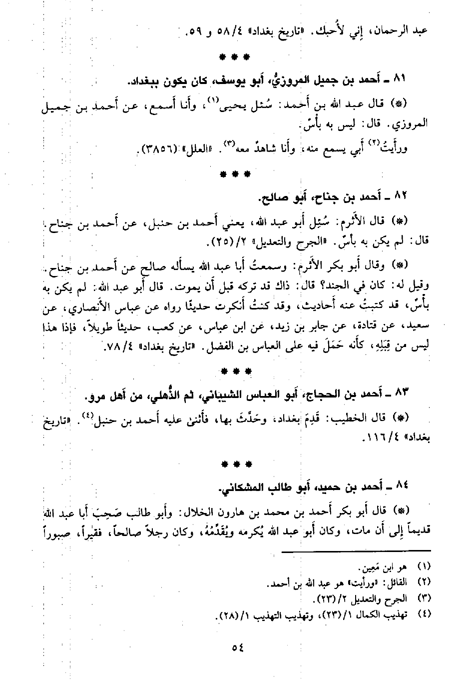 • قال عبد الله بن أحمد: سئل يحيى، وأنا أسمع، عن أحمد بن جميل المروزي. قال: ليس به بأس.