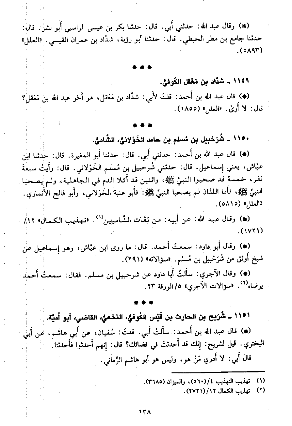 • وقال عبد الله: حدثني أبي. قال: حدثنا بكر بن عيسى الراسبي أبو بشر. قال: حدثنا جامع بن مطر الحبطي. قال: حدثنا أبو رؤبة، شداد بن عمران القيسي. «العلل» (5893) .