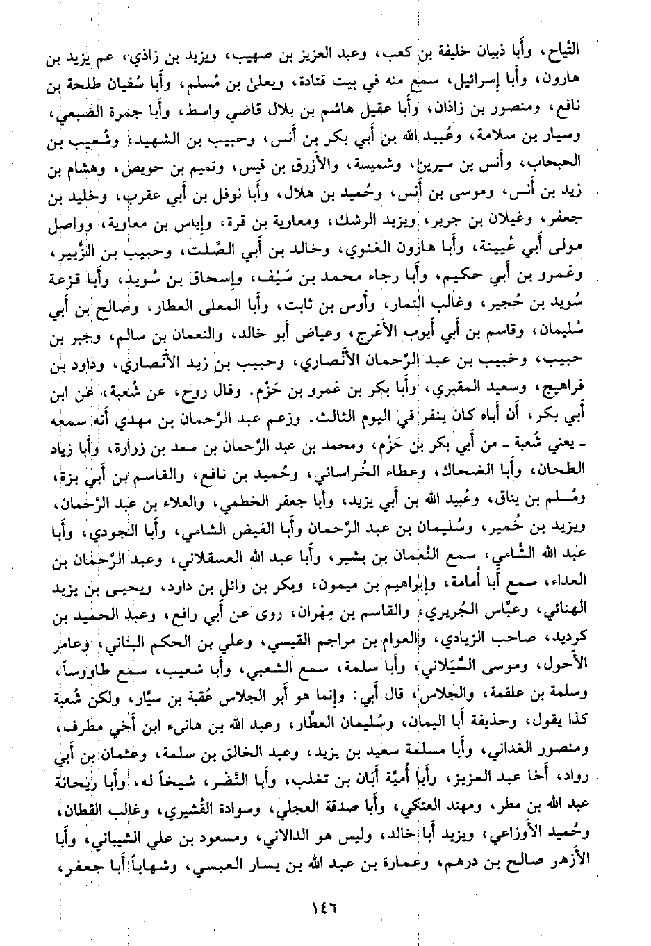 التياح، وأبا ذبيان خليفة بن كعب، وعبد العزيز بن صهيب، ويزيد بن زاذي، عم يزيد بن هارون، وأبا إسرائيل، سمع منه في بيت قتادة، ويعلى بن مسلم، وأبا سفيان طلحة بن نافع، ومنصور بن زاذان، وأبا عقيل هاشم بن بلال قاضي واسط، وأبا جمرة الضبعي، وسيار بن سلامة، وعبيد الله بن أبي بكر بن أنس، وحبيب بن الشهيد، وشعيب بن الحبحاب، وانس بن سيرين، وشميسة، والازرق بن قيس، وتميم بن حويص، وهشام بن زيد بن أنس، وموسى بن أنس، وحميد بن هلال، وأبا نوفل بن أبي عقرب، وخليد بن جعفر، وغيلان بن جرير، ويزيد الرشك، ومعاوية بن قرة، واياس بن معاوية، وواصل مولى أبي عيينة، وأبا هارون الغنوي، وخالد بن أبي الصلت، وحبيب بن الزبير، وعمرو بن أبي حكيم، وأبا رجاء محمد بن سيف، وإسحاق بن سويد، وأبا قزعة سويد بن حجير، وغالب التمار، وأوس بن ثابت، وأبا المعلى العطار، وصالح بن أبي سليمان، وقاسم بن أبي أيوب الأعرج، وعياض أبو خالد، والنعمان بن سالم، وجبر بن حبيب، وخبيب بن عبد الرحمن الأنصاري، وحبيب بن زيد الأنصاري، وداود بن فراهيج، وسعيد المقبري، وأبا بكر بن عمرو بن حزم. وقال روح، عن شعبة، عن ابن أبي بكر، أن أباه كان ينفر في اليوم الثالث. وزعم عبد الرحمن بن مهدي أنه سمعه ـ يعني شعبة ـ من أبي بكر بن حزم، ومحمد بن عبد الرحمن بن سعد بن زرارة، وأبا زياد الطحان، وأبا الضحاك، وعطاء الخراساني، وحميد بن نافع، والقاسم بن أبي بزة، ومسلم بن يناق، وعبيد الله بن أبي يزيد، وأبا جعفر الخطمي، والعلاء بن عبد الرحمن، ويزيد بن خمير، وسليمان بن عبد الرحمن وأبا الفيض الشامي، وأبا الجودي، وأبا عبد الله الشامي، سمع النعمان بن بشير، وأبا عبد الله العسقلاني، وعبد الرحمن بن العداء، سمع أبا أمامة، وإبراهيم بن ميمون، وبكر بن وائل بن داود، ويحيى بن يزيد الهنائي، وعباس الجريري، والقاسم بن مهران، روى عن أبي رافع، وعبد الحميد بن كرديد، صاحب الزيادي، والعوام بن مراجم القيسي، وعلي بن الحكم البناني، وعامر الأحول، وموسى السيلاني، وأبا سلمة، سمع الشعبي، وأبا شعيب، سمع طاووساً، وسلمة بن علقمة، والجلاس، قال أبي: وإنما هو أبو الجلاس عقبة بن سيار، ولكن شعبة كذا يقول، وحذيفة أبا اليمان، وسليمان العطار، وعبد الله بن هانىء ابن أخي مطرف، ومنصور الغداني، وأبا مسلمة سعيد بن يزيد، وعبد الخالق بن سلمة، وعثمان بن أبي رواد، أخا عبد العزيز، وأبا أمية أبان بن تغلب، وأبا النضر، شيخاً له، وأبا ريحانة عبد الله بن مطر، ومهند العتكي، وأبا صدقة العجلي، وسوادة القشيري، وغالب القطان، وحميد الأوزاعي، ويزيد أبا خالد، وليس هو الدالاني، ومسعود بن علي الشيباني، وأبا الأزهر صالح بن درهم، وعمارة بن عبد الله بن يسار العبسي، وشهابا أبا جعفر،