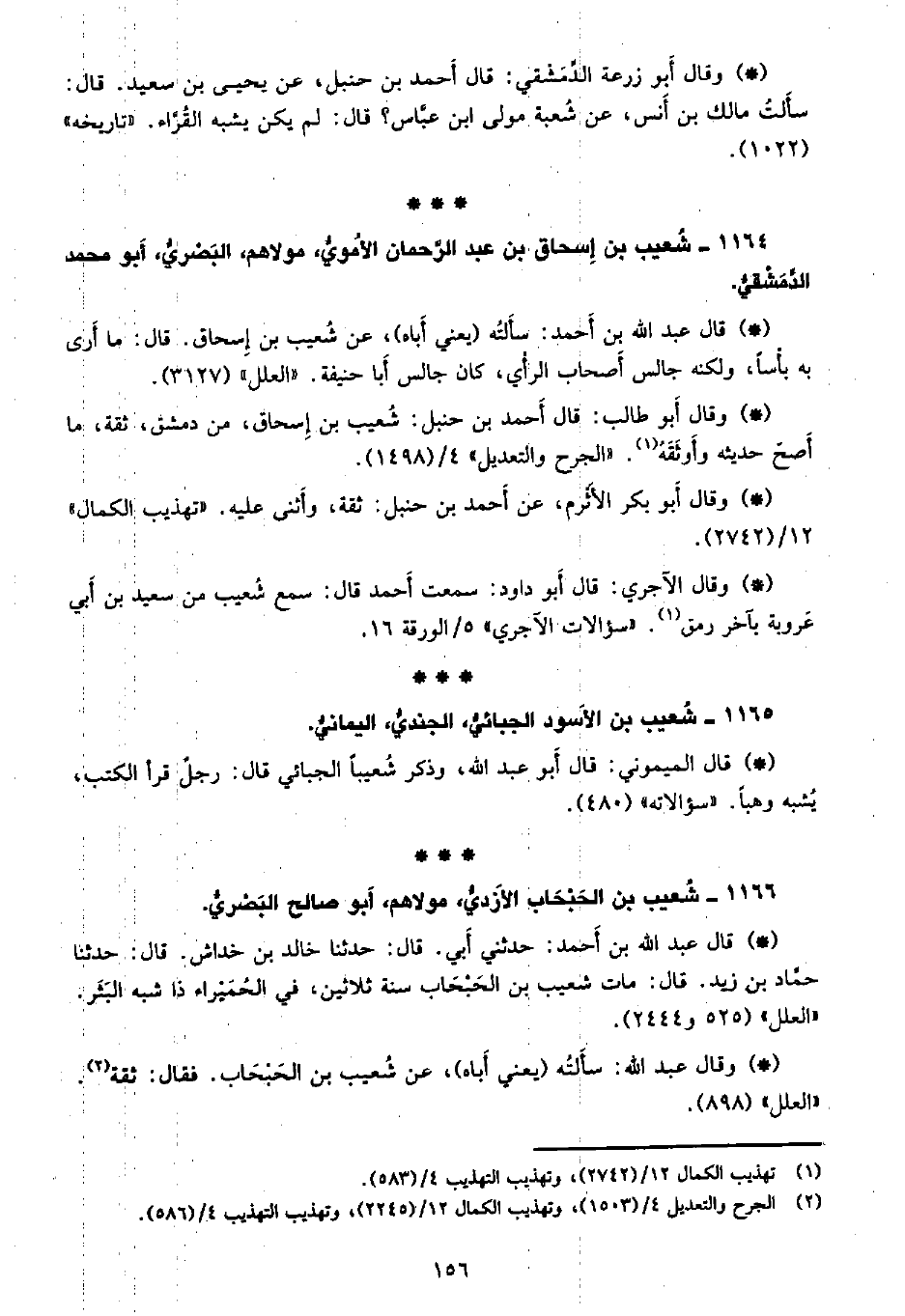 • وقال عبد الله: سألته (يعني أباه) ، عن شعيب بن الحبحاب. فقال: ثقة. «العلل» (898) .