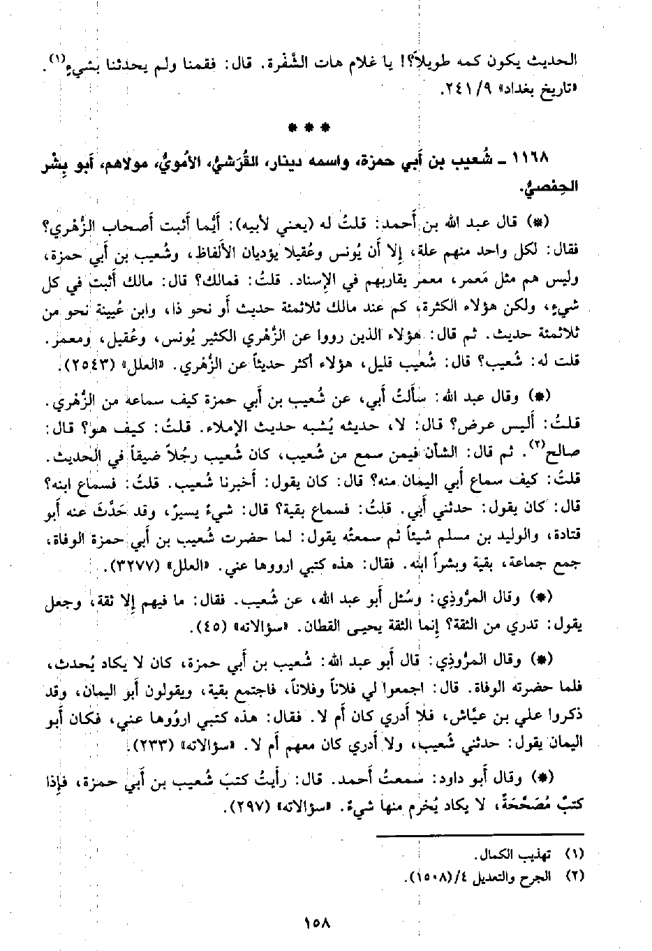1168 - شعيب بن أبي حمزة، واسمه دينار، القرشي، الأموي، مولاهم، أبو بشر الحمصي.