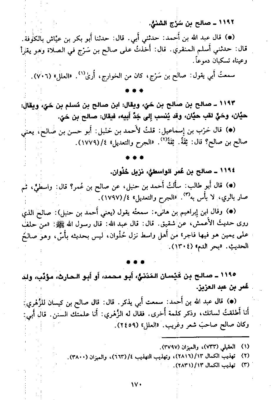 1193 - صالح بن صالح بن حي، ويقال: ابن صالح بن مسلم بن حي، ويقال: حيان، وحي لقب حيان، وقد ينسب الى جد أبيه، فيقال: صالح بن حي.