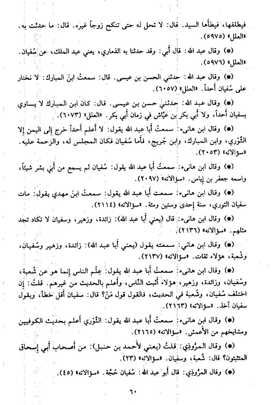 • وقال ابن هانىء: سمعت أبا عبد الله يقول: سمعت ابن مهدي يقول: مات سفيان الثوري، سنة إحدى وستين ومئة. «سؤالاته» (2114) .
