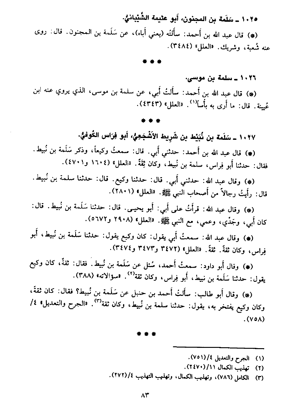 • قال عبد الله بن أحمد: حدثني أبي. قال: سمعت وكيعاً، وذكر سلمة بن نبيط. فقال: حدثنا أبو فراس، سلمه بن نبيط، وكان ثقة. «العلل» (1604 و4701) .